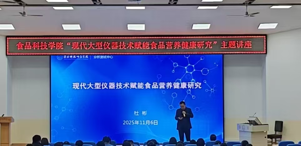 此次讲座旨在促进大型仪器技术在食品科学与营养健康研究领域的深入应用与交流。讲座内容系统全面,涵盖了分析测试中心概况、大型仪器使用介绍、大型仪器应用实例以及技术赋能食品营养健康研究四大核心模块。杜彬老师结合实际案例,生动讲解了各类大型仪器的具体型号,主要功能,在食品成分分析、营养评价与产品开发中的具体应用以及在我校的存放地点。