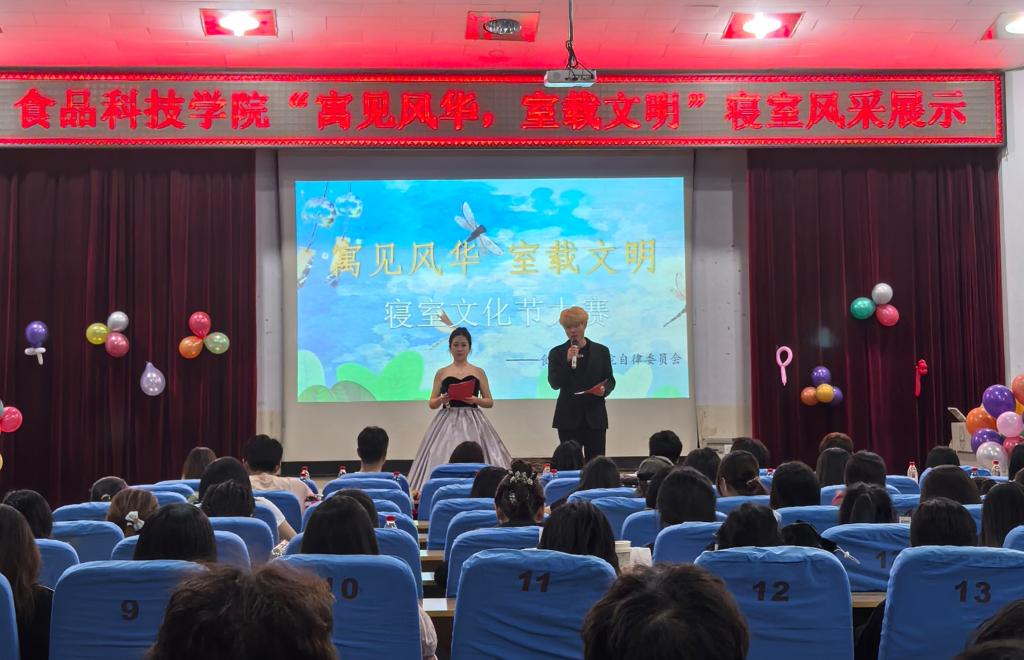 为丰富校园文化生活,营造和谐温馨的寝室氛围,5月24日晚,食品科技学院在昌黎校区学术报告厅隆重举办了“寓见风华,室载文明”为主题的寝室文化节活动。本次活动旨在通过多样化的展示与互动,展现学生寝室的独特风采,促进同学间的交流与合作,传递文明、健康、积极的寝室文化理念。