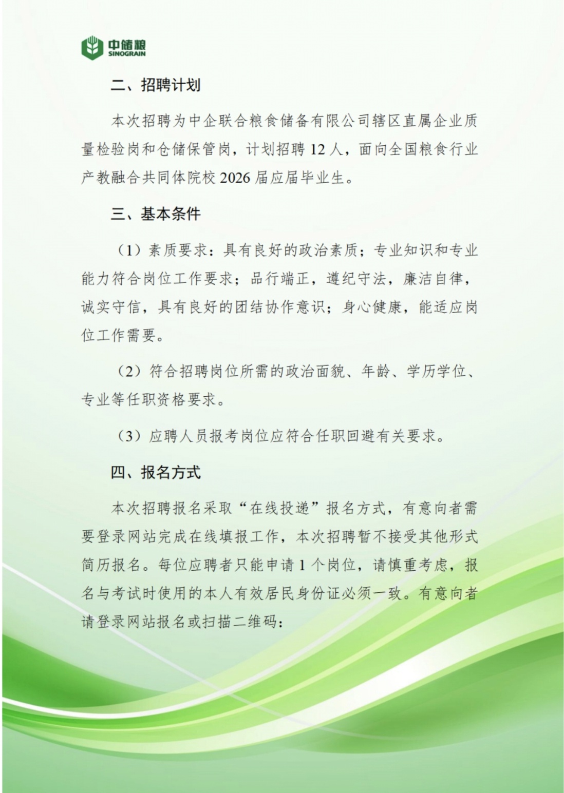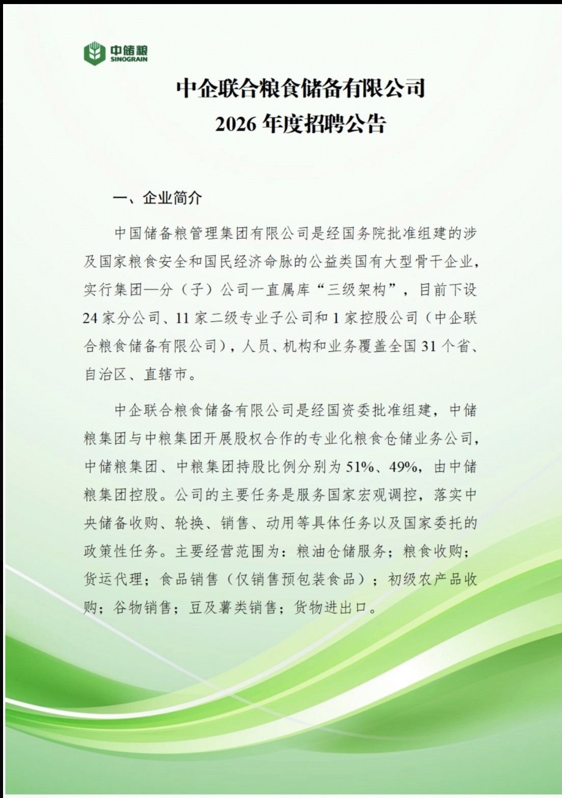 中企联合粮食储备有限公司2026年度招聘公告