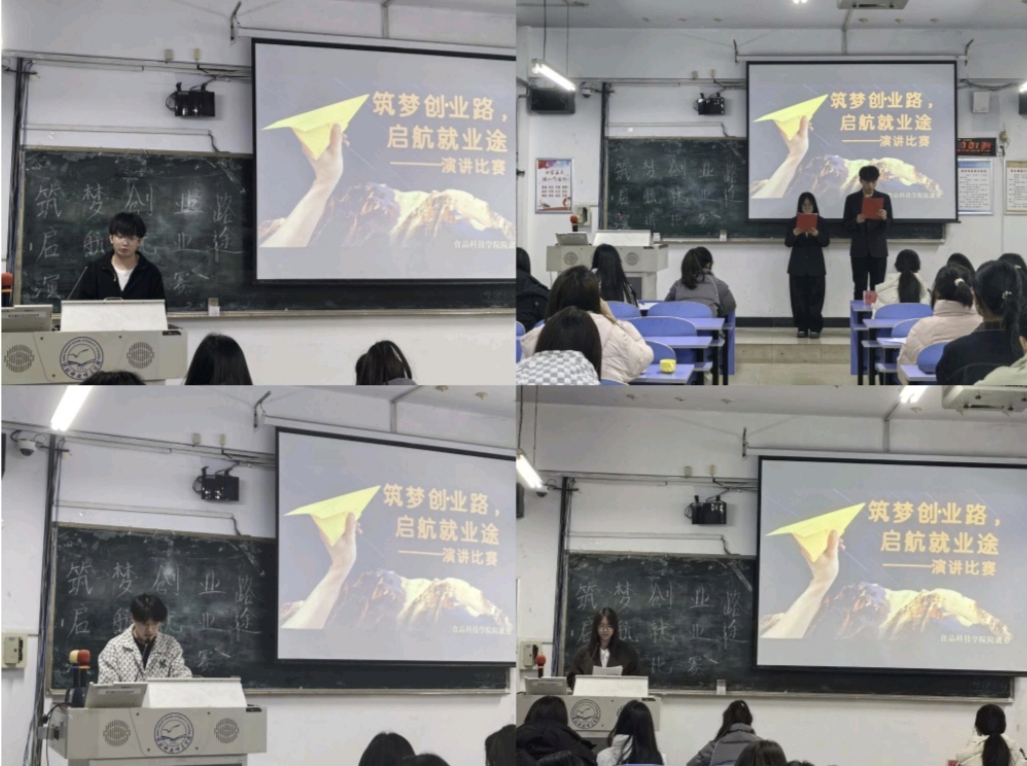 2025年11月23日晚上,食品科技学院在1c104举办了"筑梦创业路,启航就业途"主题演讲比赛。此次活动得到同学们的大力支持,现场气氛十分浓厚。
