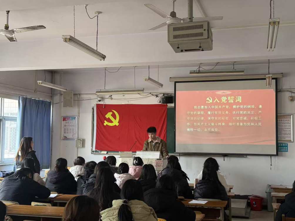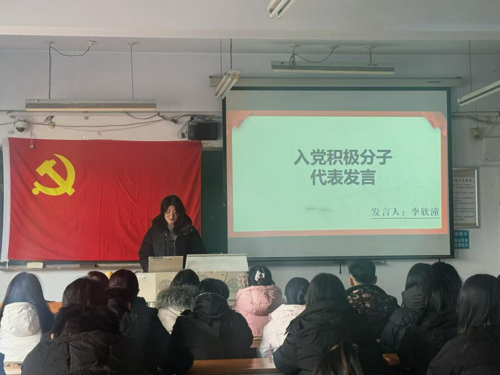 宣誓结束后,预备党员代表吴松瑞发言。他表示,成为预备党员是人生的重要里程碑,今后将以党员标准严格要求自己,在学习和工作中勇挑重担、争当先锋,用实际行动践行入党誓言。入党积极分子代表李欣潼同学分享了自身的思想感悟,表达了向党组织靠拢的强烈愿望和刻苦学习、砥砺奋进的决心。