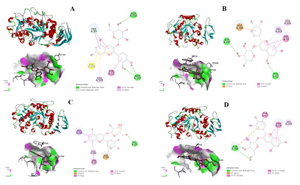 图2. 几种花色苷单体与胰淀粉酶的相互作用分析。