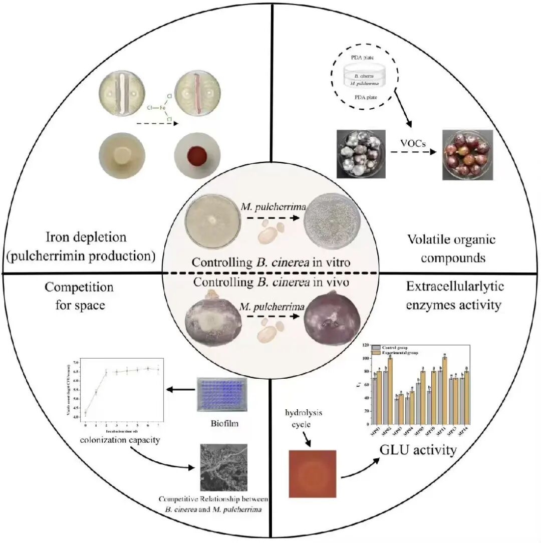 课题组聚焦葡萄采后灰霉病绿色防控技术,以美极梅奇酵母为研究对象,突破“同种菌株机制趋同”的传统认知,首次从多维度揭示种内菌株功能分化,为构建精准绿色防控策略提供了理论支撑。