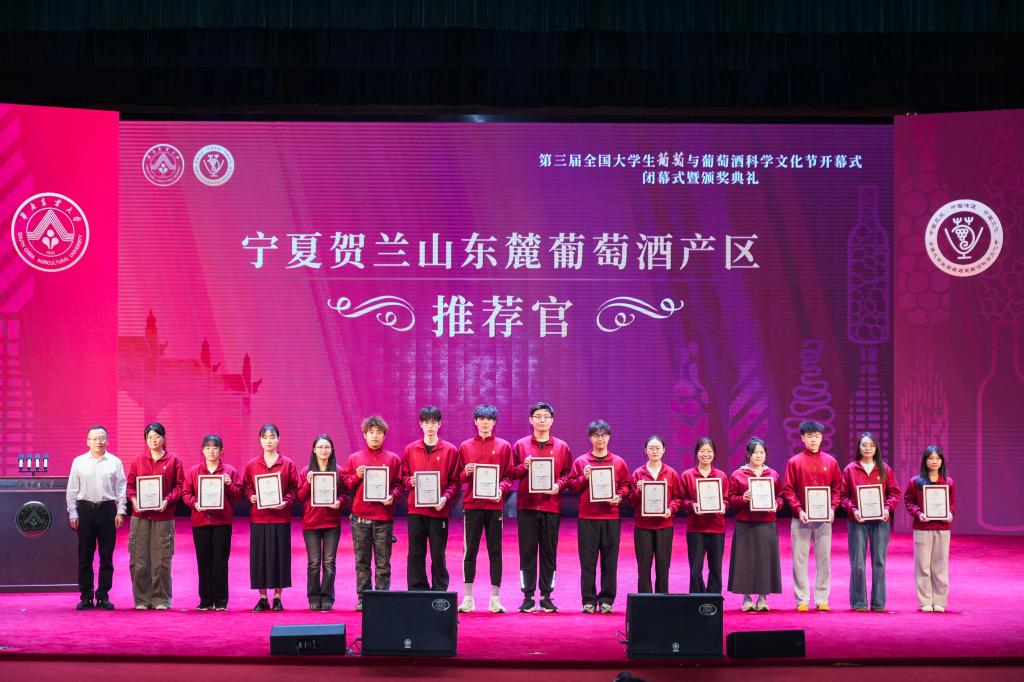 11月16日,第三届全国大学生葡萄与葡萄酒科学文化节于华南农业大学圆满闭幕。食品科技学院石文琪老师指导的研究生鄢艺美、刘妍辉、姚金含在系列赛事之“举杯贺兰山”大学生葡萄与葡萄酒科技创新大赛中荣获“银葡萄奖”,并作为学生代表被授予宁夏贺兰山东麓葡萄酒产区推荐官。该赛事吸引了全国各高校共计64个团队踊跃参与,我院学子与来自华南农业大学、宁夏大学、中国农业大学、西北农林科技大学、沈阳药科大学五所高校的团队一同入围决赛。